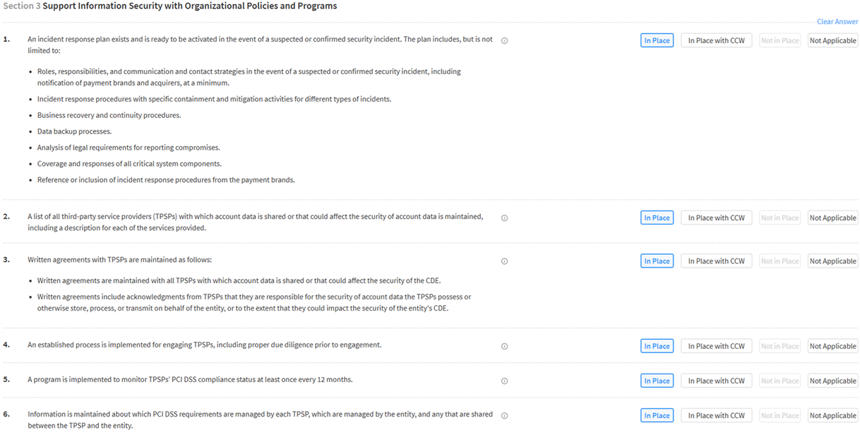 Section 3 is where you need to answer the remaining 6 questions by confirming these policies and programs are in place with the third-party service providers you are engaging with (your software Service Provider and Jupico).